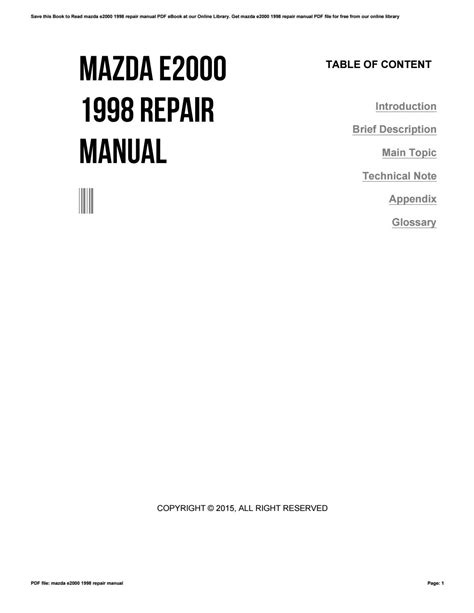 Free PDF Mazda E2000 1998 Repair Manual PDF Hardcover Gutenberg